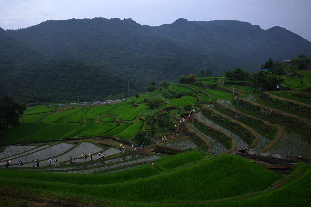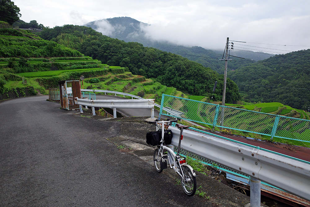 坂道を注意しながら自転車で下り、脇道を抜けると目の前に広がる一面の千枚田。